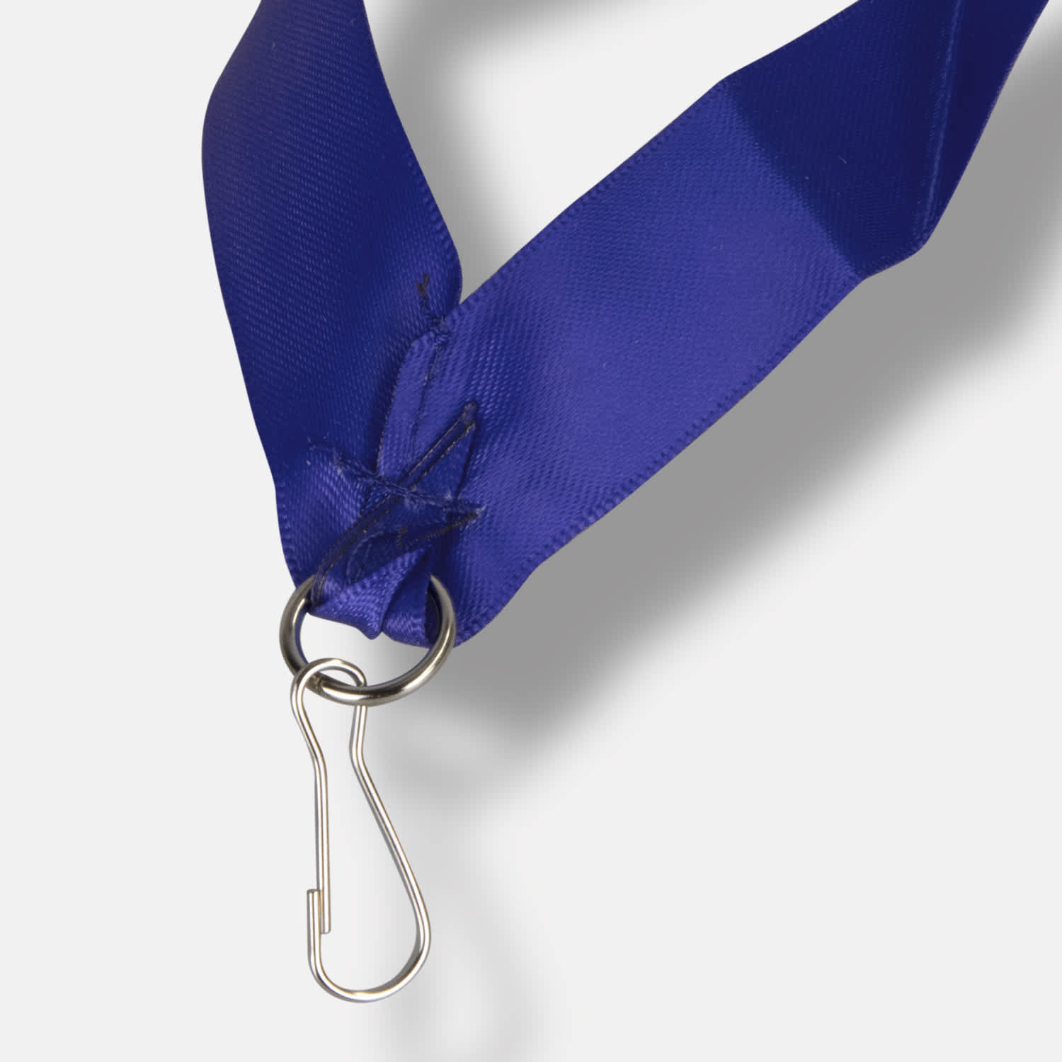 20mm wide ribbon lanyard with a metal ring, a clip and a breakaway safety clip. It can be printed in one colour on one side.