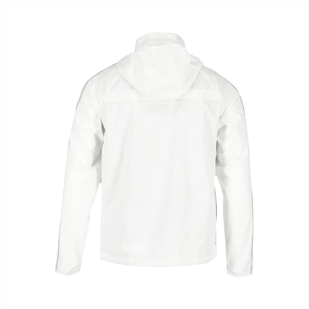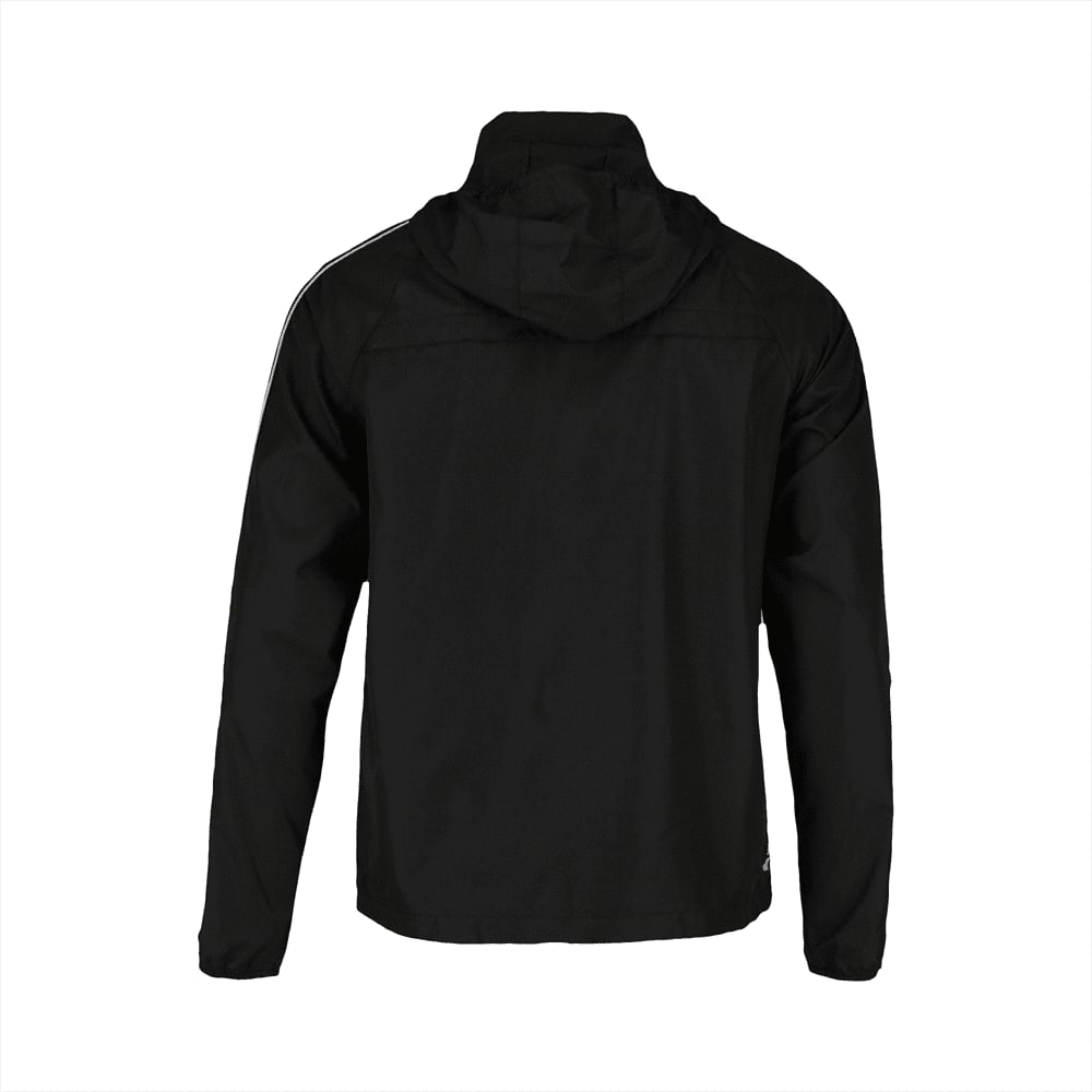 | Features | Interior zipper flap with chin guard, centre front exposed contrast plastic zipper (recycled content), lower pockets with exposed contrast plastic zipper (recycled content), roll-away hood with elasticised opening, elasticised cuffs, elastic drawcord at hem with interior cordlocks, contrast piping, easy grip zipper pulls, heat transfer main label for tagless comfort, articulated elbows, ergonomic sleeves, back vent, zipper garage pocket feature, hanger loop at inside back neck, packable. |