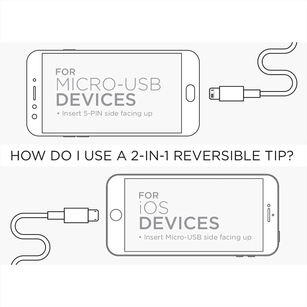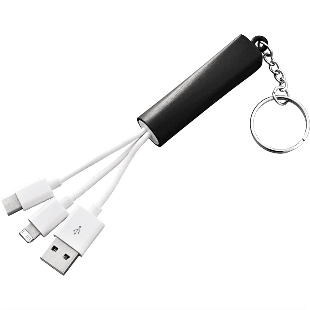 The Route Light Up 3-in-1 Charging Cable features a USB A tip, USB Type C tip, and a 2-in-1 dual compatible tip for both Apple® iOS and Android devices.