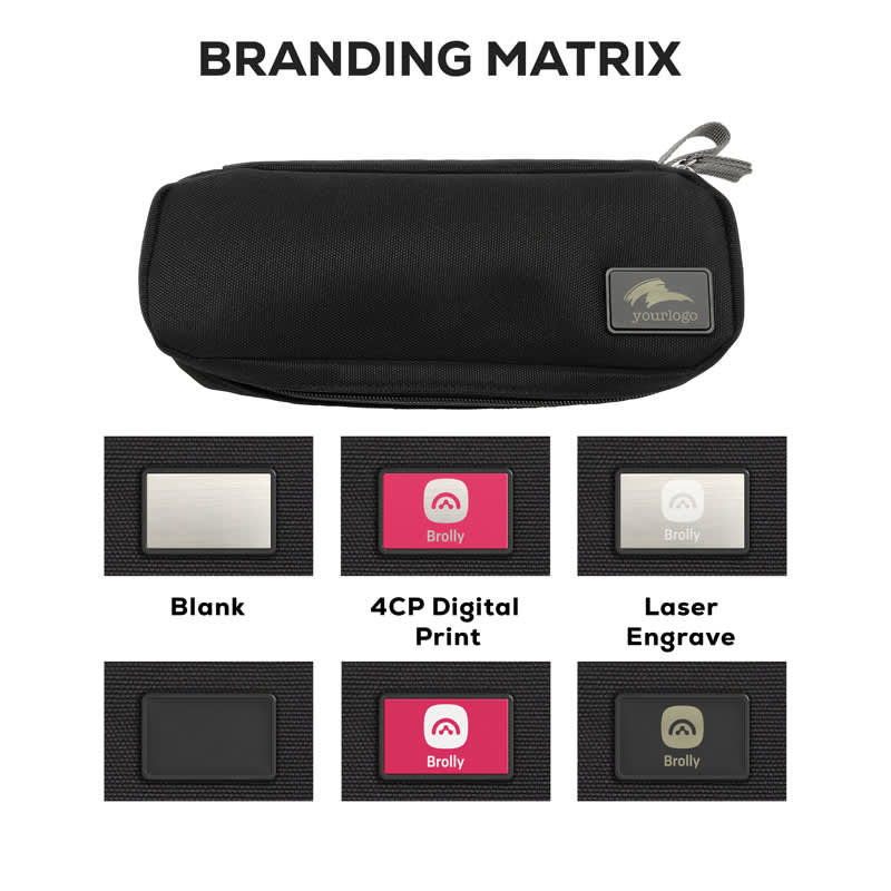 The Rumi Eco is a padded zippered pouch made from recycled plastic bottles. It is durable and lightweight, incorporating a mesh pocket and elastic straps to organise multiple items and protect travel essentials, including USB charge cables, car chargers, ear buds, power banks, adaptors, and more. Its recycled ABS logo retainer and recycled aluminium logo plate provide an ideal surface for laser engraved or full-colour digital branding and allow for a sustainable choice for individuals and businesses. Made from RPET, this zippered pouch blends practicality, style, and environmental responsibility, helping reduce plastic waste with every use. Material includes RPET, Recycled ABS, and Recycled Aluminium.