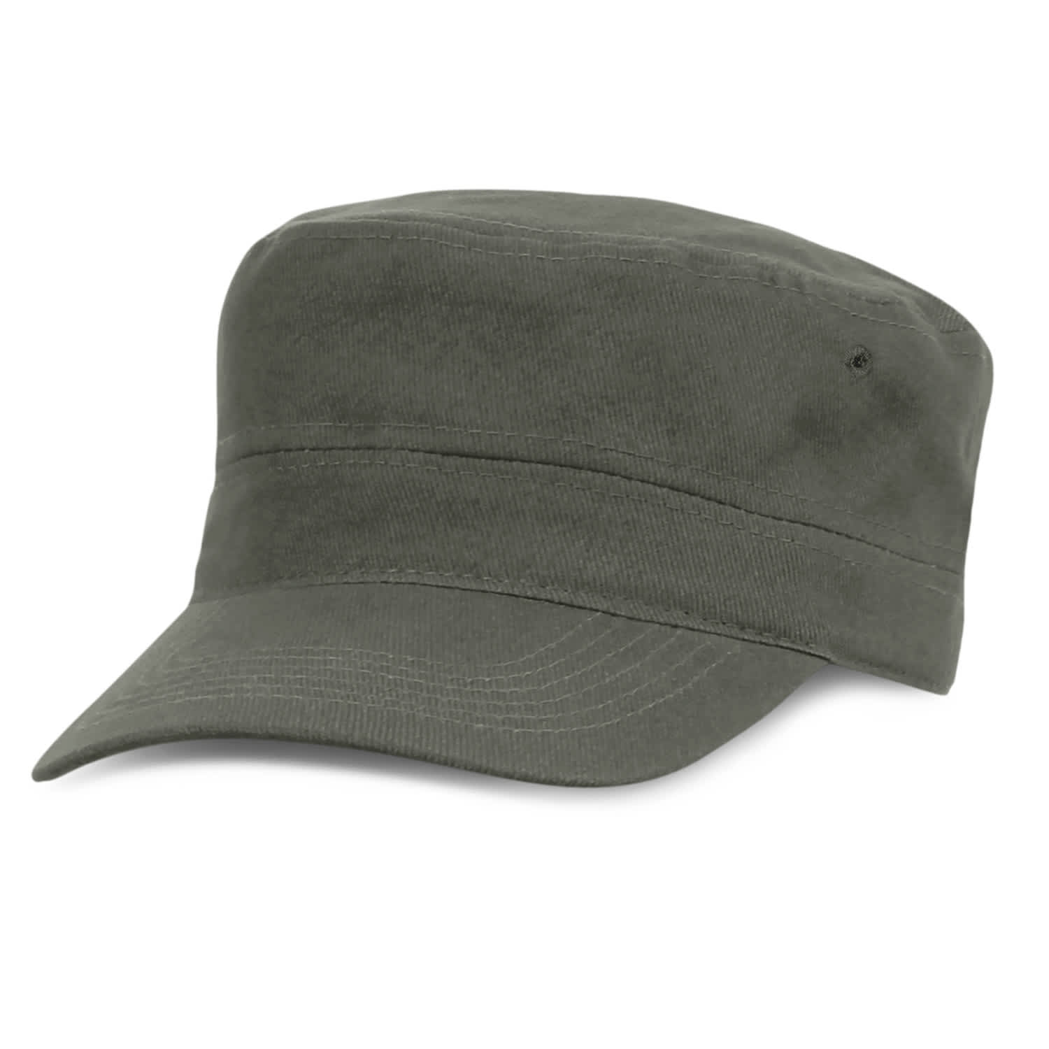 Military style heavy cotton cap which is popular for promotion or as part of a uniform. It has a pre-curved peak and a sweatband along with an adjustable velcro closure which allows one size to fit most people.