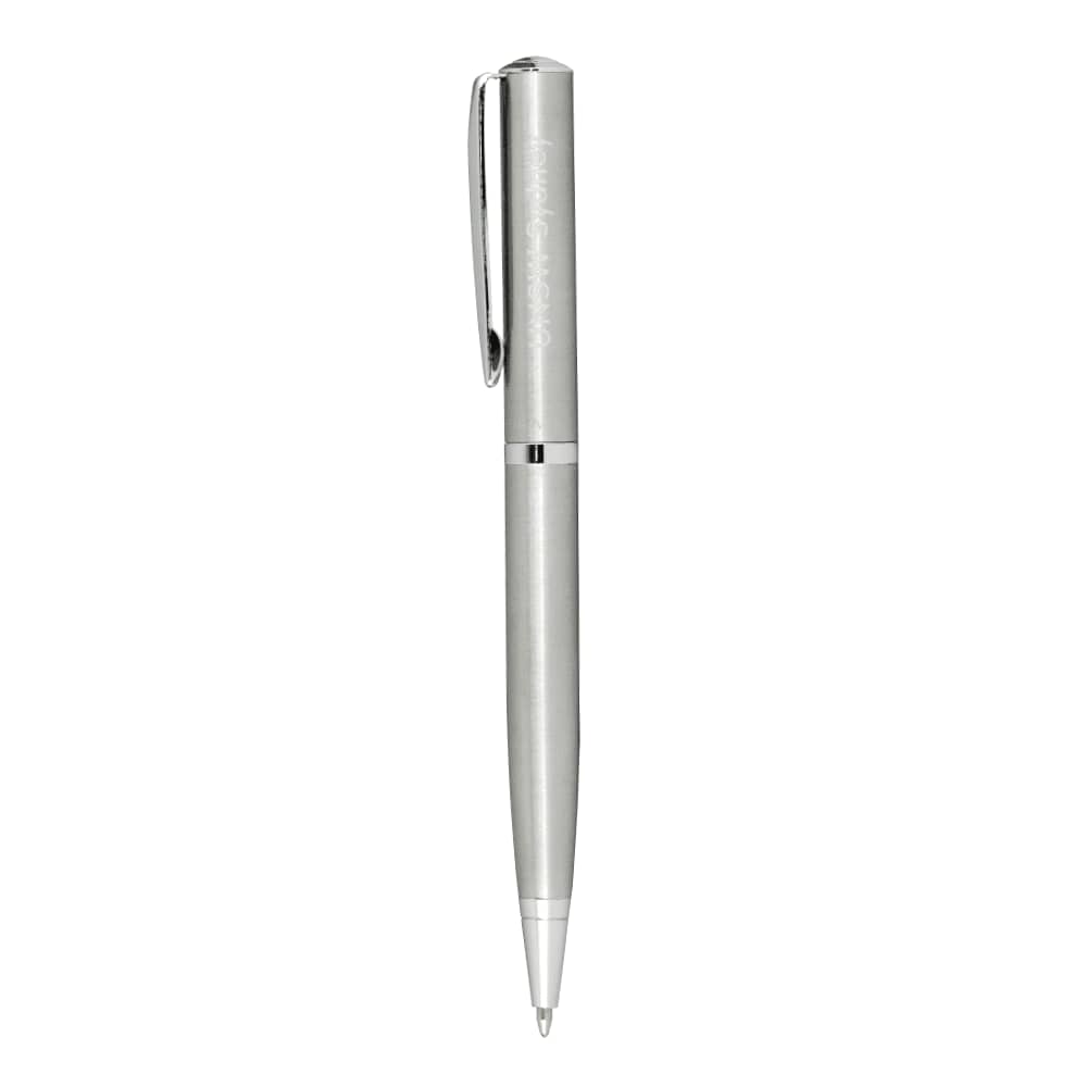 Exclusive design, light weight metal ballpoint in a matte brushed silver with chrome coloured details and a scriptura clip.