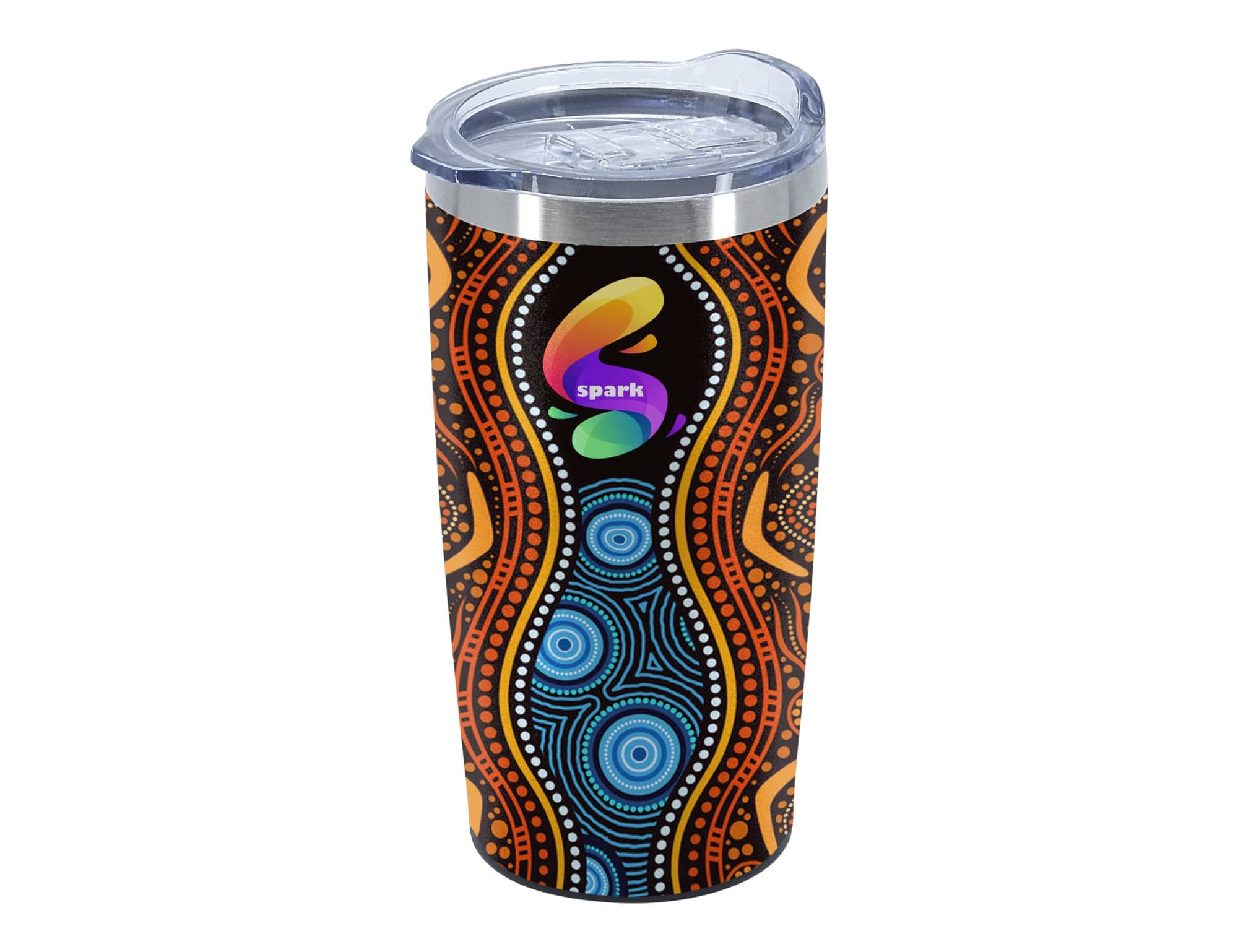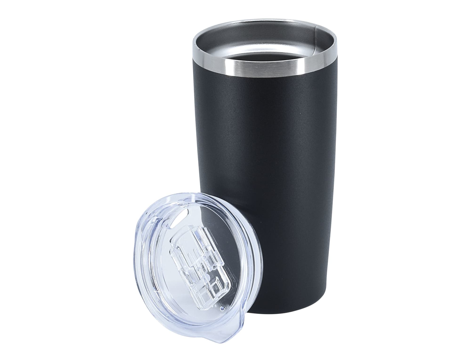 If top of the range is important, then check out 500ml Seville Double Wall Mug. 100% BPA free, it features a powder-coated outer (black), pro-grade 18/8 double wall vacuum stainless steel construction, unique copper lining (designed to keep drinks hot or cold for hours) and clear acrylic lid with ultra-glide sliding tab. Available in powder-coated matt black or natural stainless steel. Supplied in a black gift box.