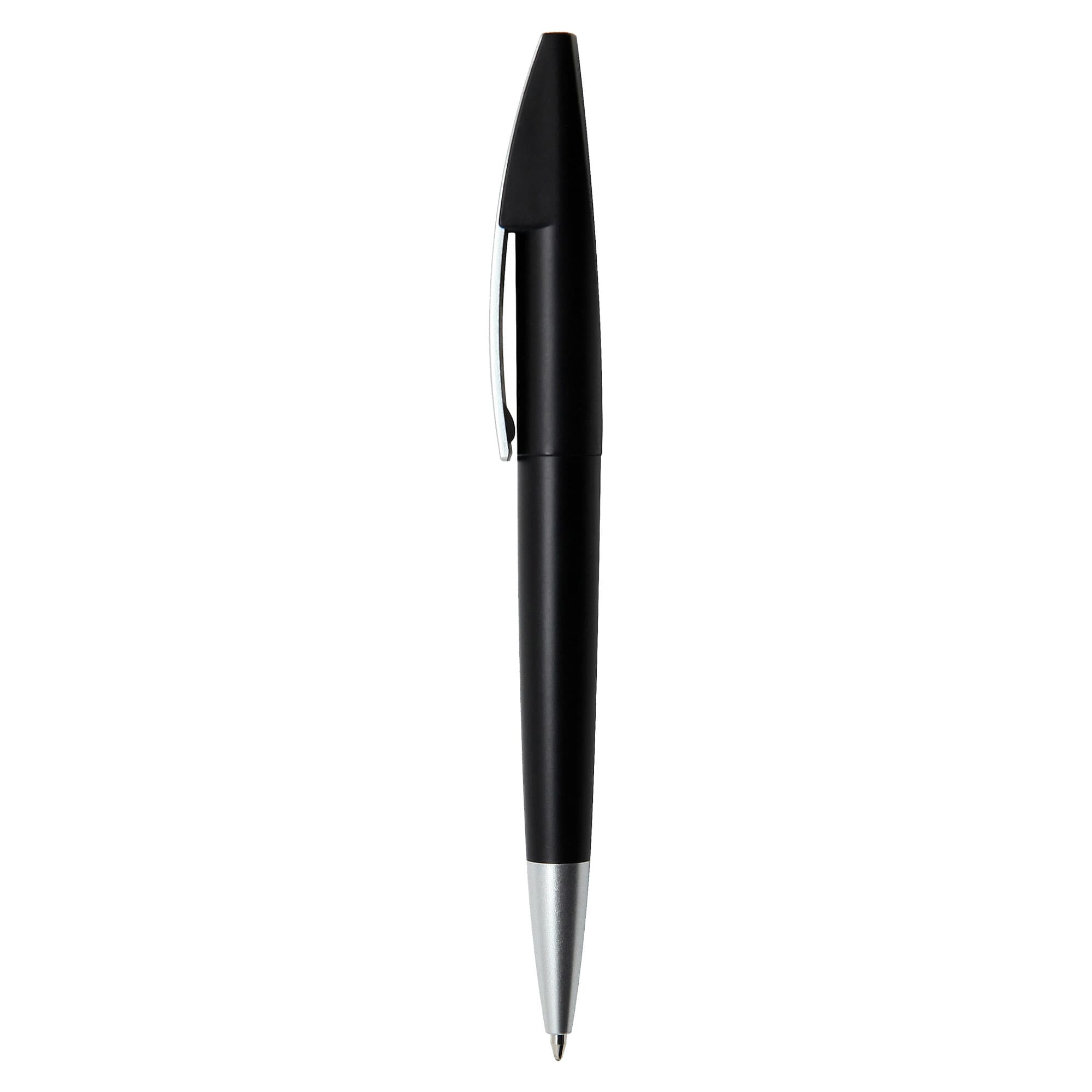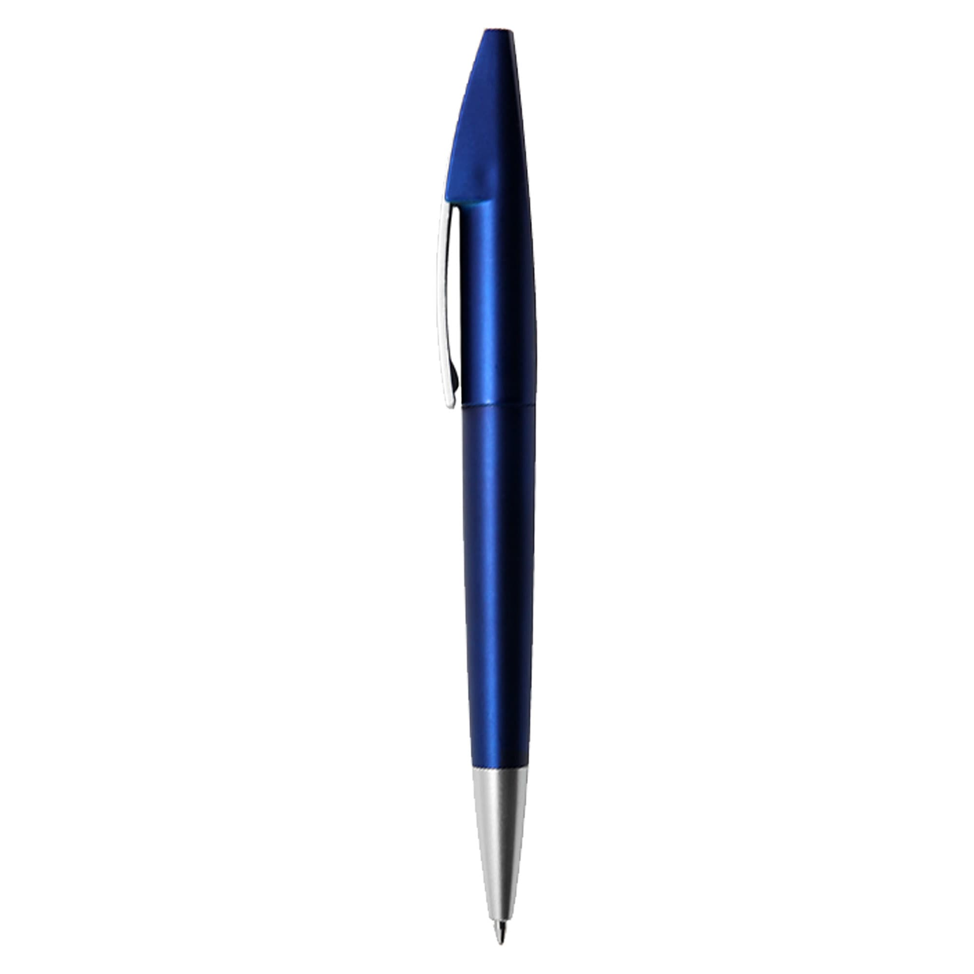This high-tech looking European style plastic pen with metallic coloured barrel and matt silver chrome clip and tip large printing area on clip twist action with high quality German manufactured black ink refill 1800 meters writing distance tungsten carbide ball provides you with quality writing.