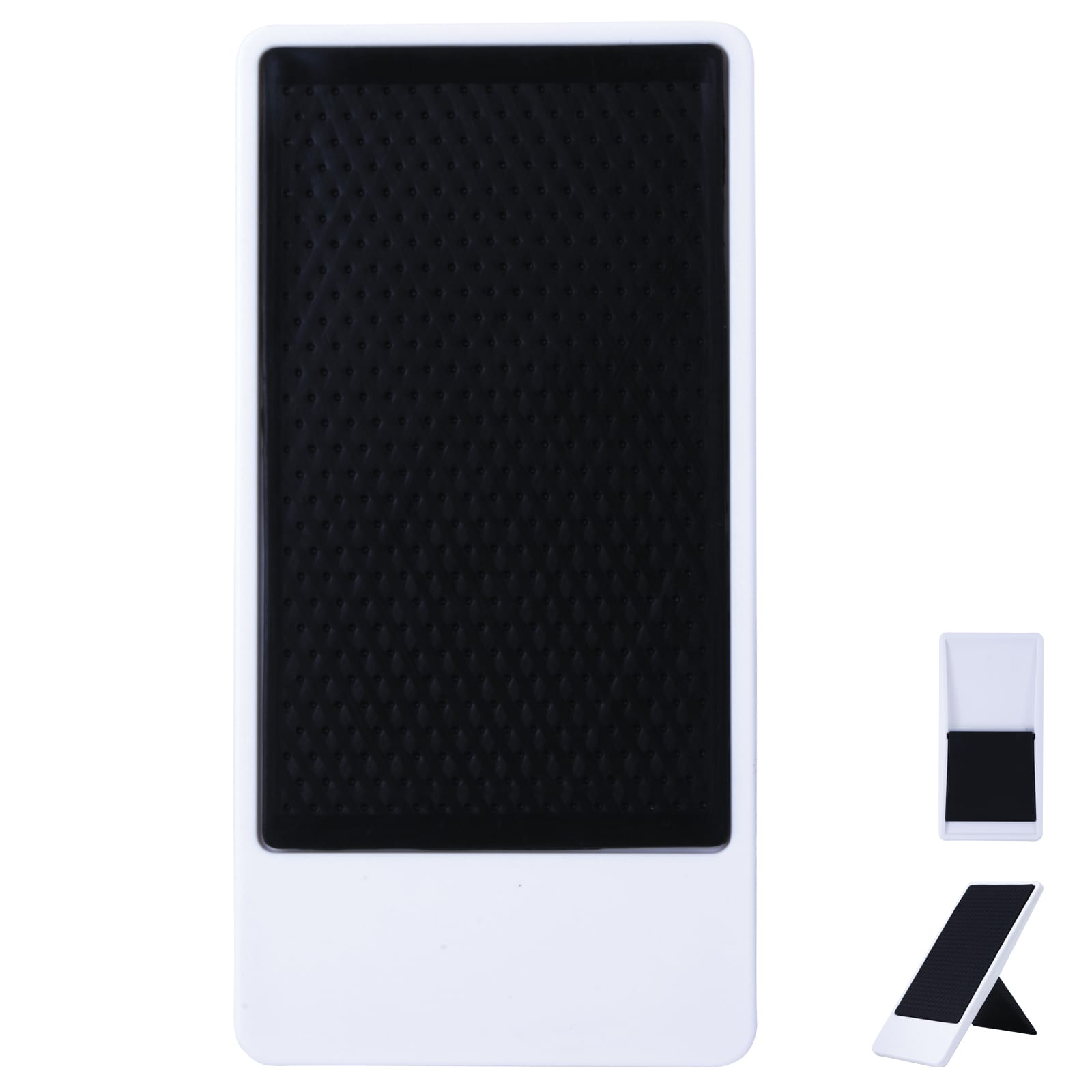 The Smart Phone Holder combines functionality with style. This white folding phone holder features a coloured silicone grip pad, ensuring your mobile device stays securely in place while remaining easily viewable. The sleek white base with a contrasting black grip adds a touch of modern elegance to any desk or workspace.