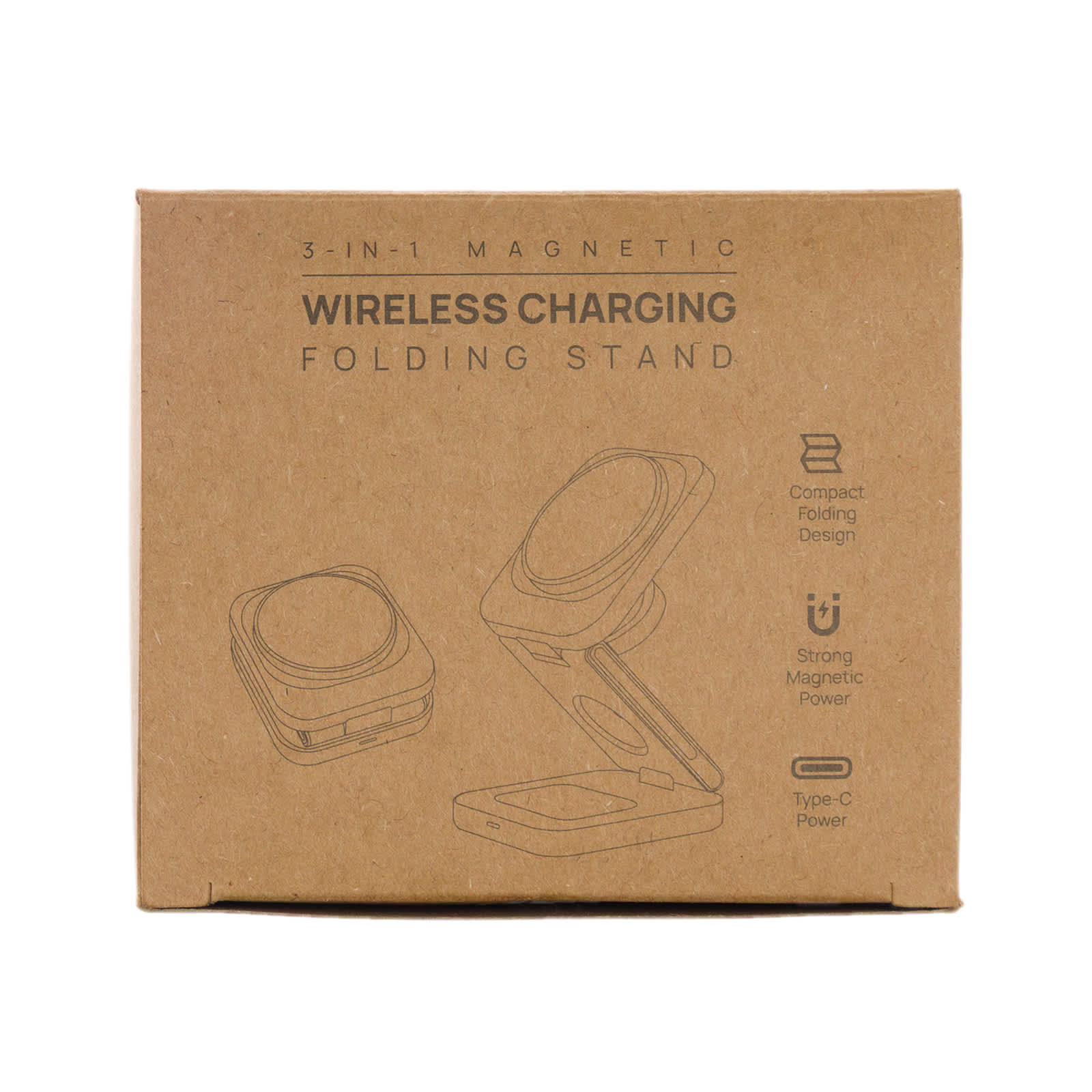 Charge all your essentials in one place with the Spartan 3-in-1 Wireless Charger. Designed for Apple devices, this adjustable charger wirelessly powers your Apple Watch and AirPods, while the Qi-compatible phone charger supports both Apple and other Qi-enabled smartphones. The faceplate allows for full-colour digital print or 1-colour pad print decoration, making it a great promotional item. Comes with a 1m Type C to Type C power cable and is presented in a factory-printed kraft tuck box.