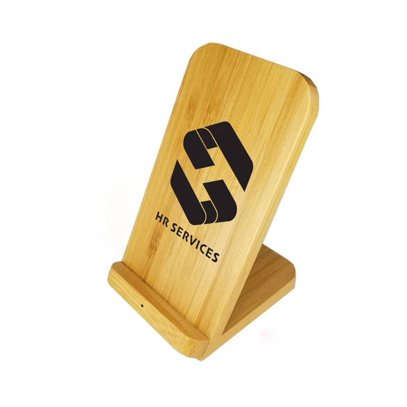 Eco-friendly and traditional in design, the Stirling Fast Wireless Charger Stand offers two built-in coils specifically designed for quick and efficient charging of your phone vertically or horizontally. Complete with Foreign Object Detection, over-current and dynamic power limiting protection, this desktop charge stand is compatible with any smartphone or device meeting the Qi wireless charging standard (5W, iPhone up to 7.5W, Samsung up to 10W). Includes USB charge cable and user manual. Material: Bamboo.
