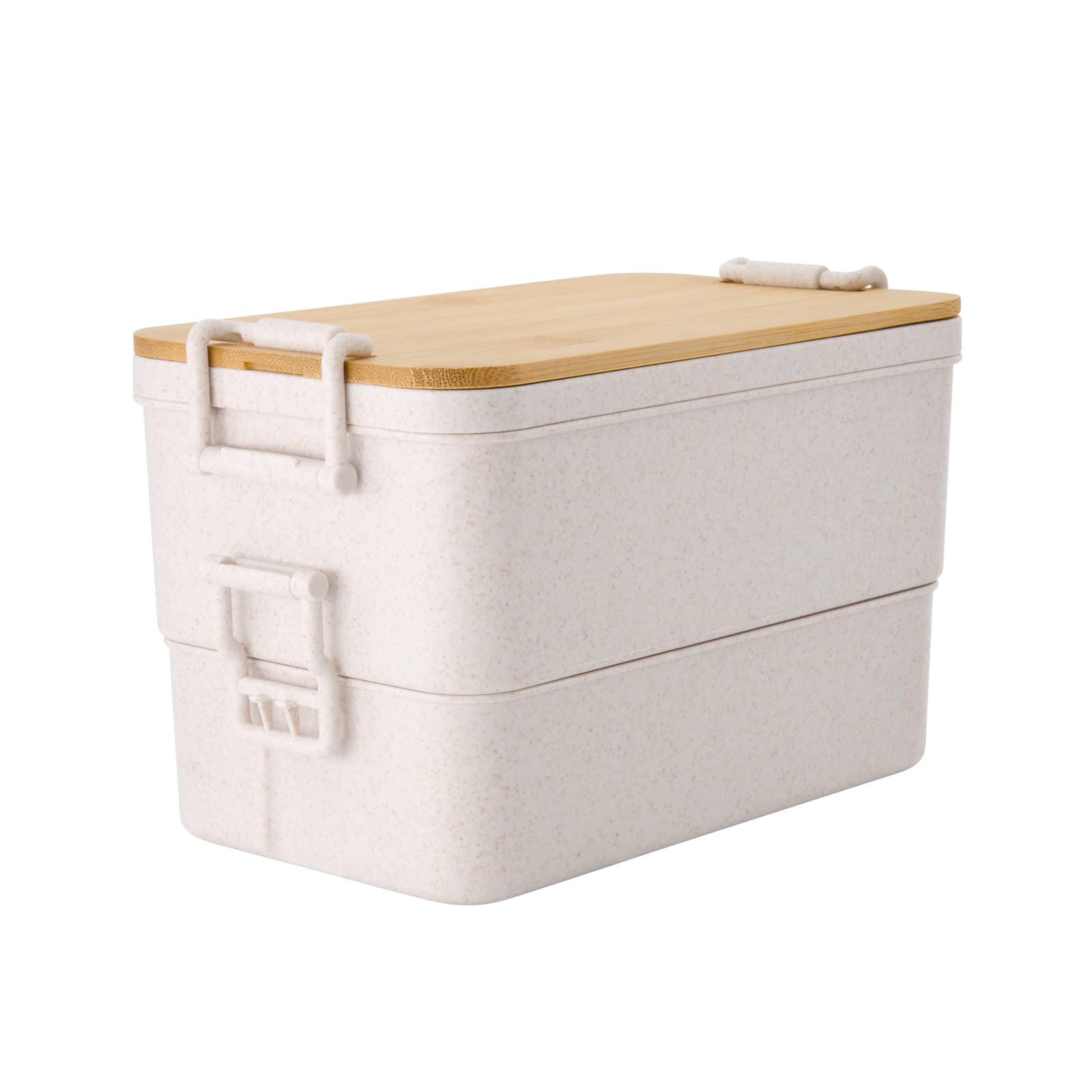 The Sturdee Double Tray Lunchbox offers a practical, eco-conscious solution for meals on the go. Made from a wheatstraw/PP blend with a natural bamboo lid that doubles as a serving board, it combines style with convenience. Three pieces of cutlery – a knife, fork, and spoon – are neatly stored in a tray under the lid, ready for use. The two trays can be stacked together or separated into individual containers, making it easy to organise your lunch. Instructions are included for ease of use.