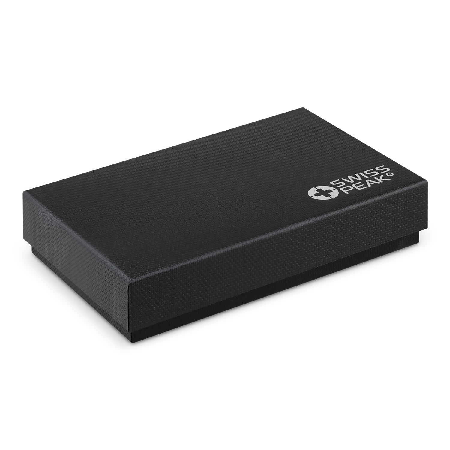 * Presentation: Black gift box with Swiss Peak branding