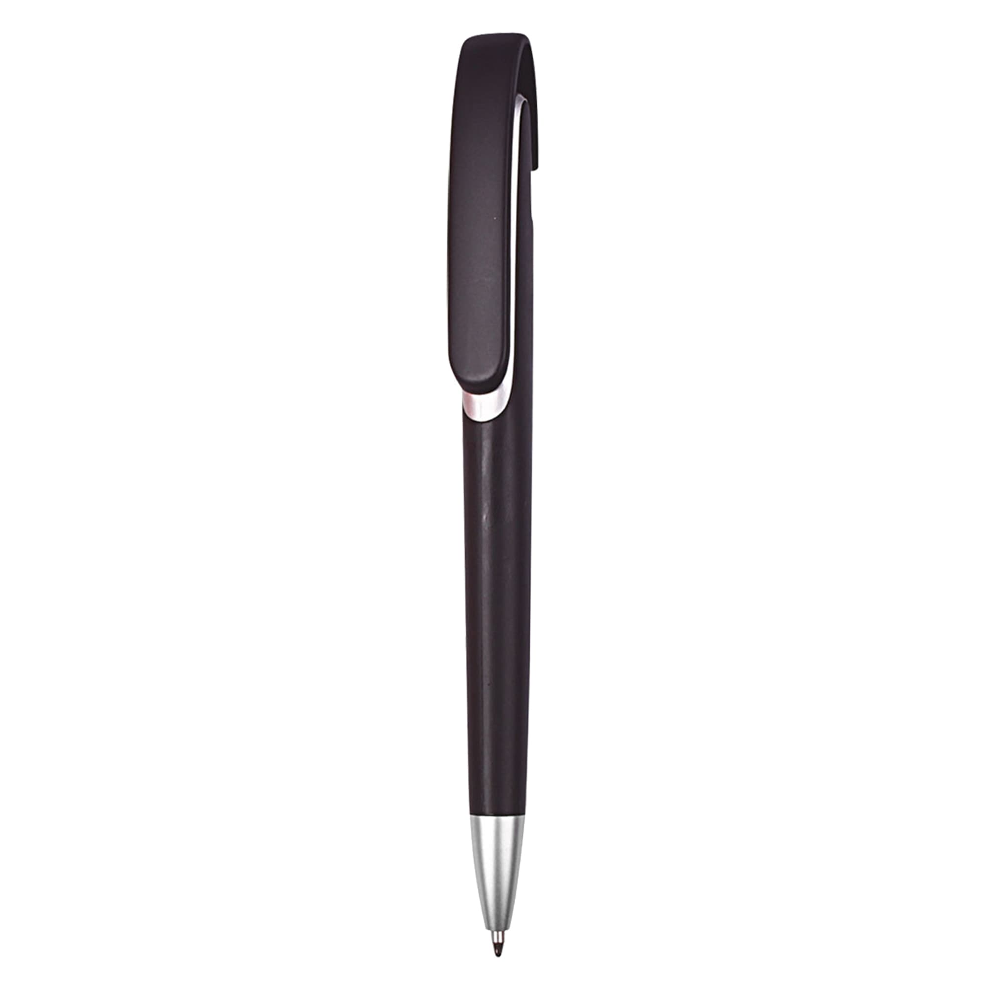 Click action plastic pen with broad printing area on clip coloured opaque barrel and clip a small silver panel beneath the clip which highlights the pen design matt silver chrome tip. It has high quality German manufactured black ink refill 1800 meters writing distance tungsten carbide ball provides you with quality writing.