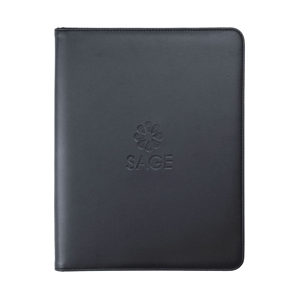 | Features | Features zippered closure, internal gusseted pocket, internal zippered pocket, business card holders, pen loop, and white lined pad which inserts from the top. Pen not included. Check out our Tablet Compatibility chart to see which tablets fit in the product. |