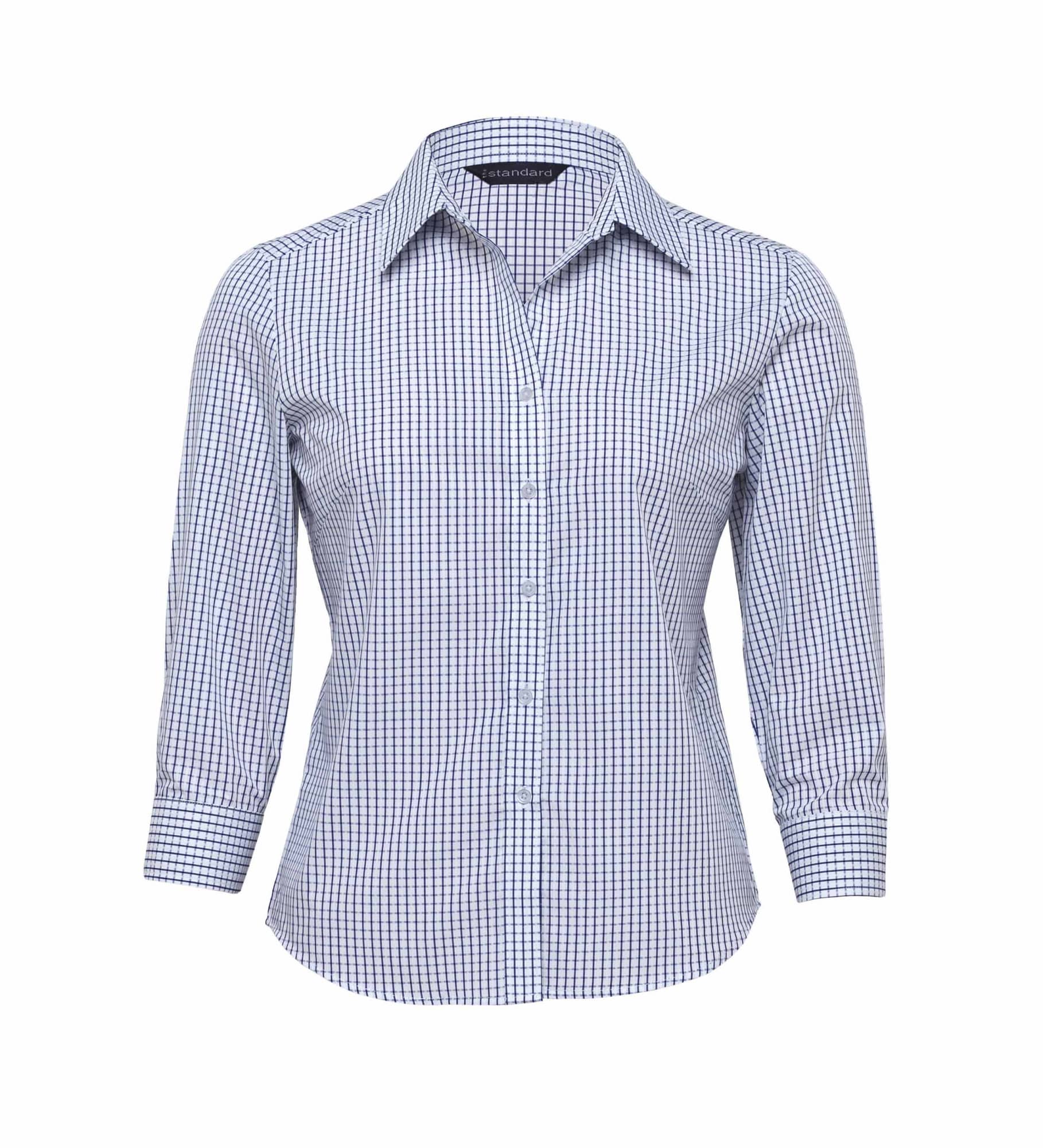 65% polyester 35% cotton yarn dyed check jacquard|Classic fit|Fashion collar|Shaped body detailing front and back|¾ length sleeves|Contoured hemline