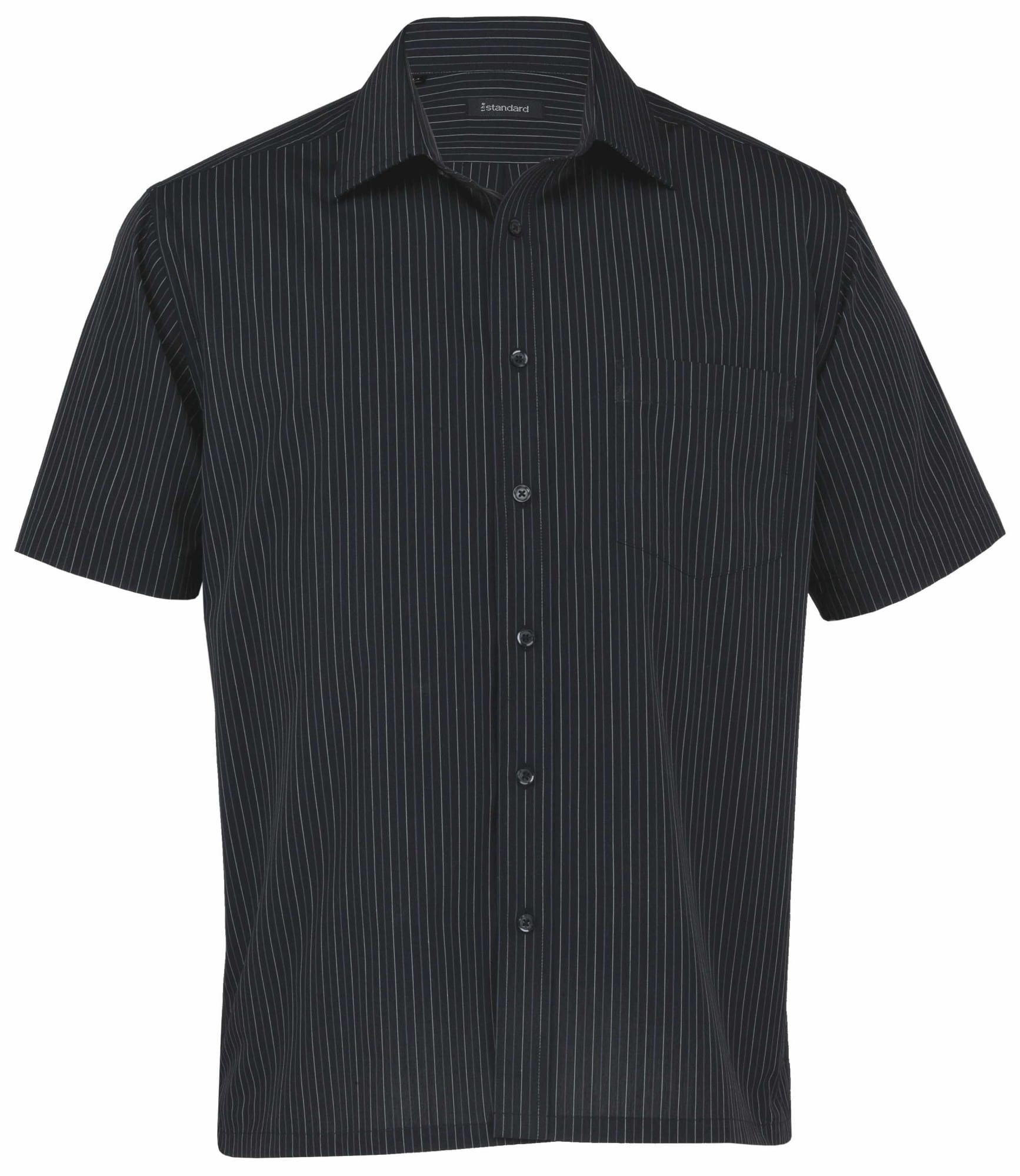 65% polyester 35% cotton yarn dyed multi stripe|Tapered fit|Fashion collar|Short sleeves|Single chest pocket