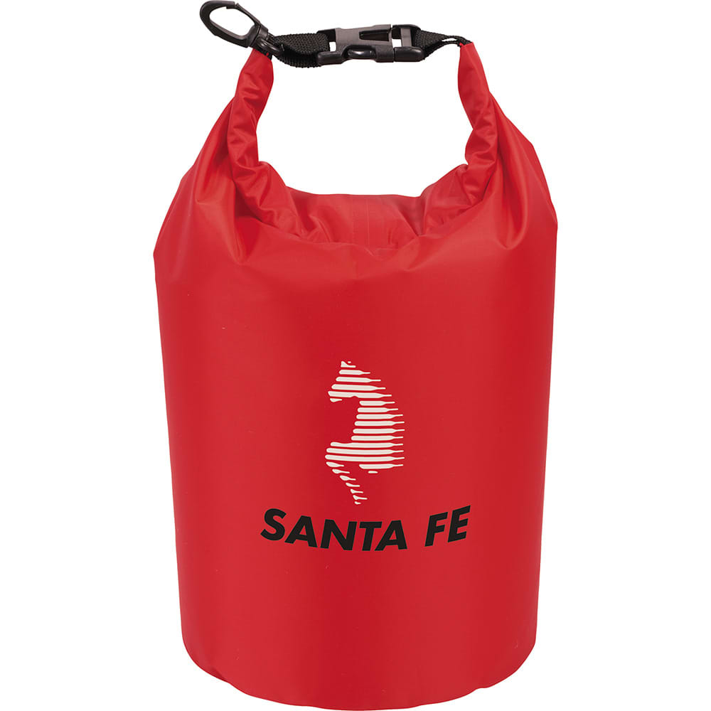 Waterproof outdoor bag. Roll-top closure with plastic buckle to keep your valuables dry and safe on outdoor activities. Easily snaps on a bag or belt.
