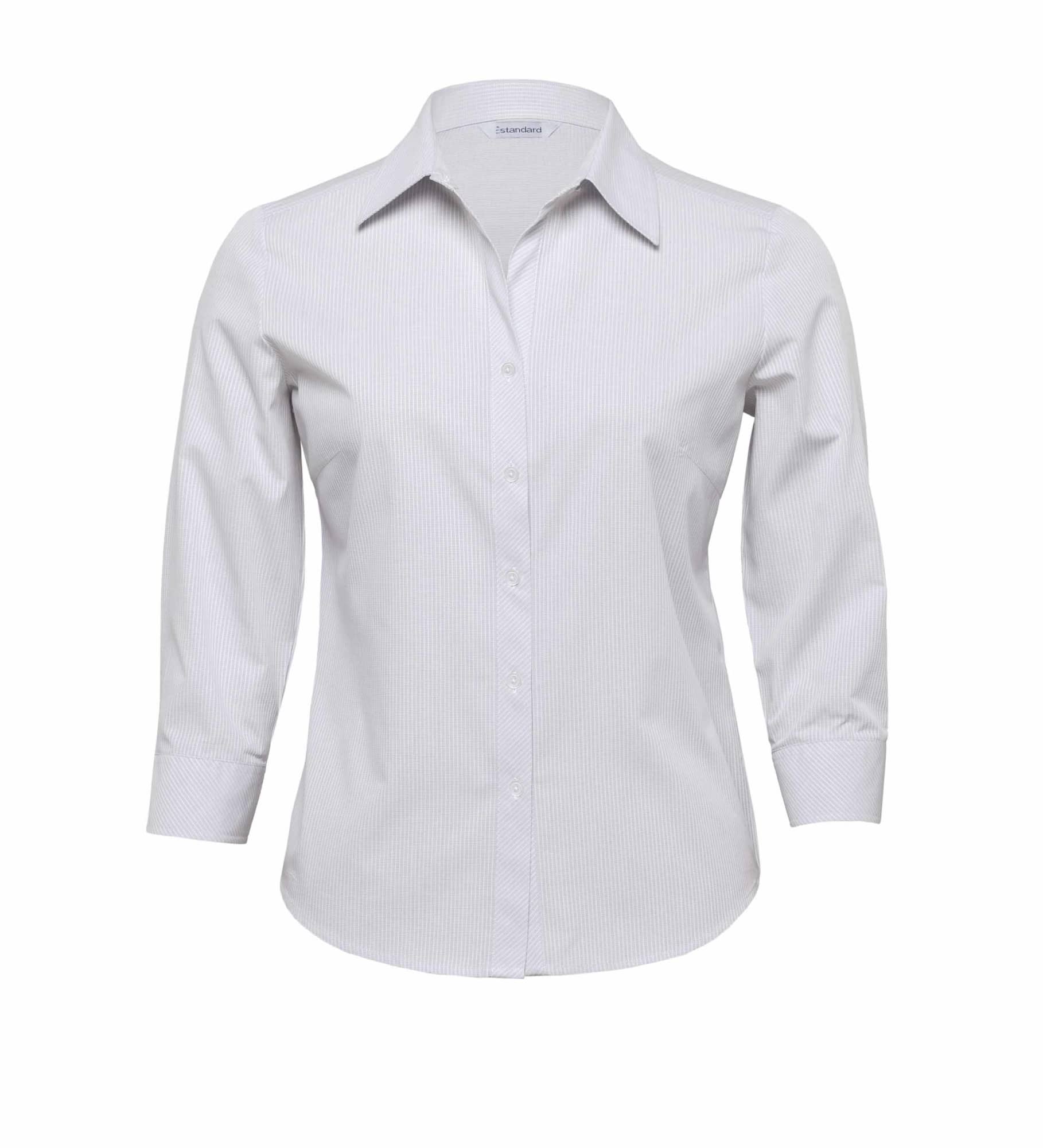 65% polyester 35% cotton square weave jacquard|Classic fit|Fashion collar|Shaped body detailing front and back|¾ length sleeves|Contoured hemline