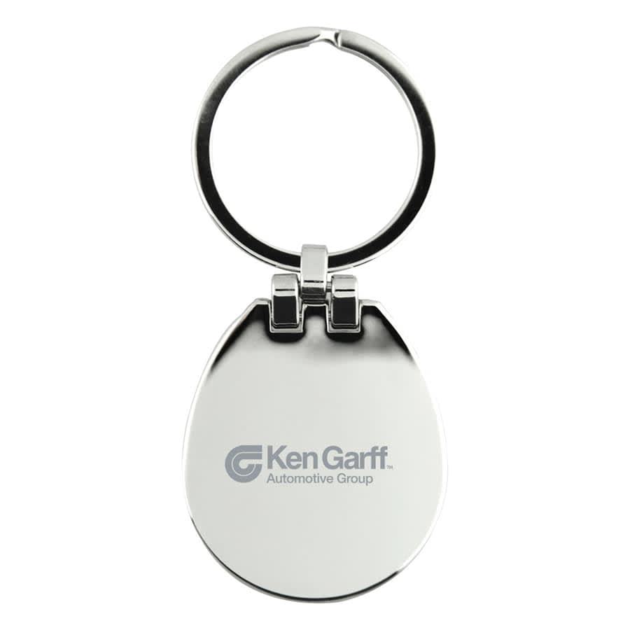 The Westfield Keychain features a polished metal design with a leather-like front and a sleek polished metal back. Customisation options include printing on the front leather side or a laser-engraved logo on the reverse, making it a sophisticated and versatile promotional item.