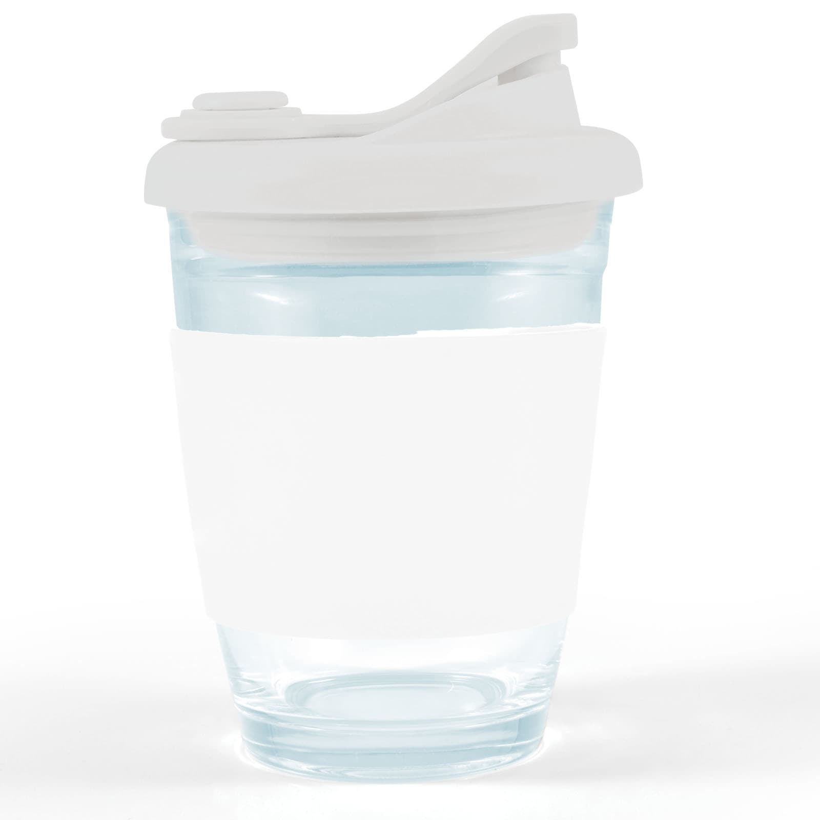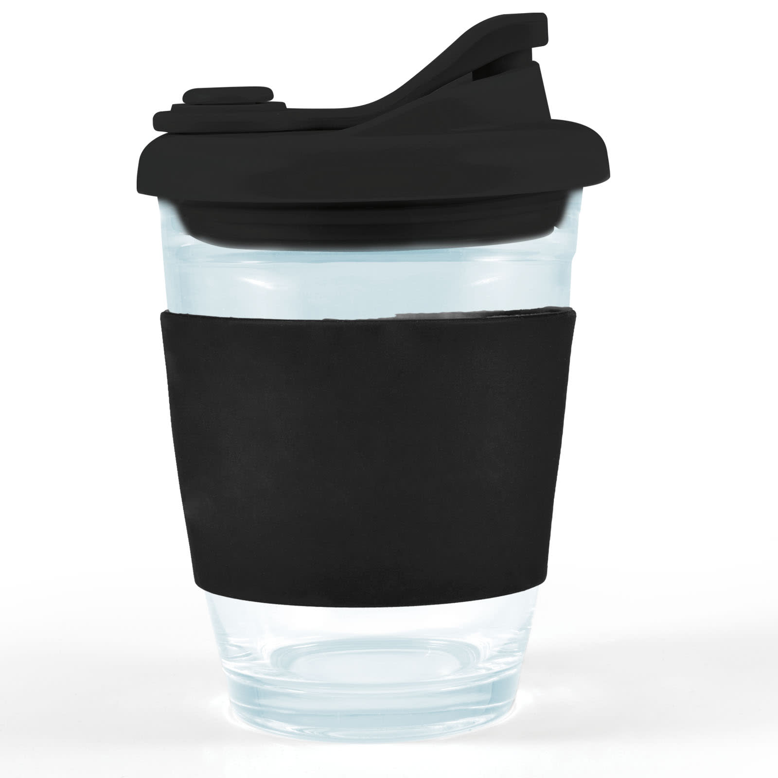 320ml glass reusable coffee cup. With secure fitting polypropylene lid silicone lid and sleeve. Made from Borosilicate glass known for its durability and thermal shock resistance. Nominate your choice of lid and sleeve colours. Packed in a kraft gift box. Hand washing recommended.