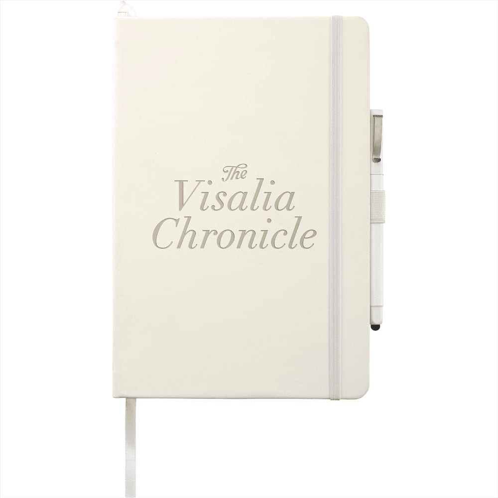 Soft touch, hard cover bound journal with built-in elastic closure.