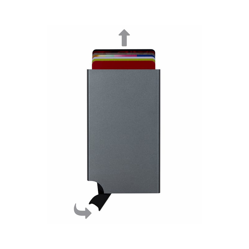 Wally is a secure (credit) card holder for the minimalists. It offers room for up to 6 cards and has integrated RFID protection technology to keep your cards and personal information safe from RF readers or mobile apps capable of electronic theft. No more bending and breaking. With smart entry cards and digital payment technologies like Paywave, Apple Pay, Samsung Pay, Wechat Pay taken by storm, this is the only wallet you will need in the near future! Material: Aluminium.