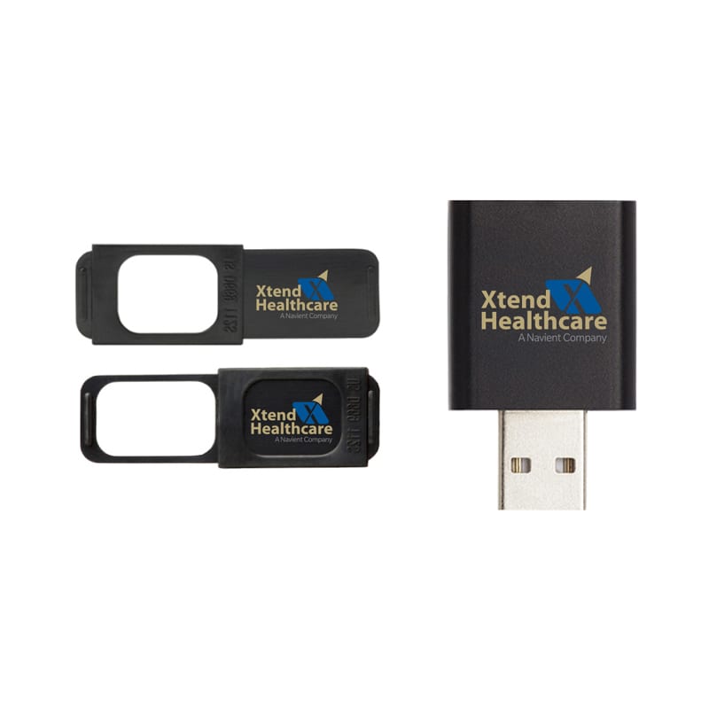 The Webcam Privacy Pack delivers the ultimate protection for smartphones, tablets, laptops and desktop computers. Data theft is difficult to detect and can be harmful and detrimental to you and your device. Protect yourself with a Webcam cover designed to slide left and right to hide or reveal your webcam. At the same time, simply plug your USB charge cable into the data blocker before plugging it into the charging source to remove the threat of any unwanted data transfers. Includes standard backing card with instructions or custom-designed cards. Material: ABS.